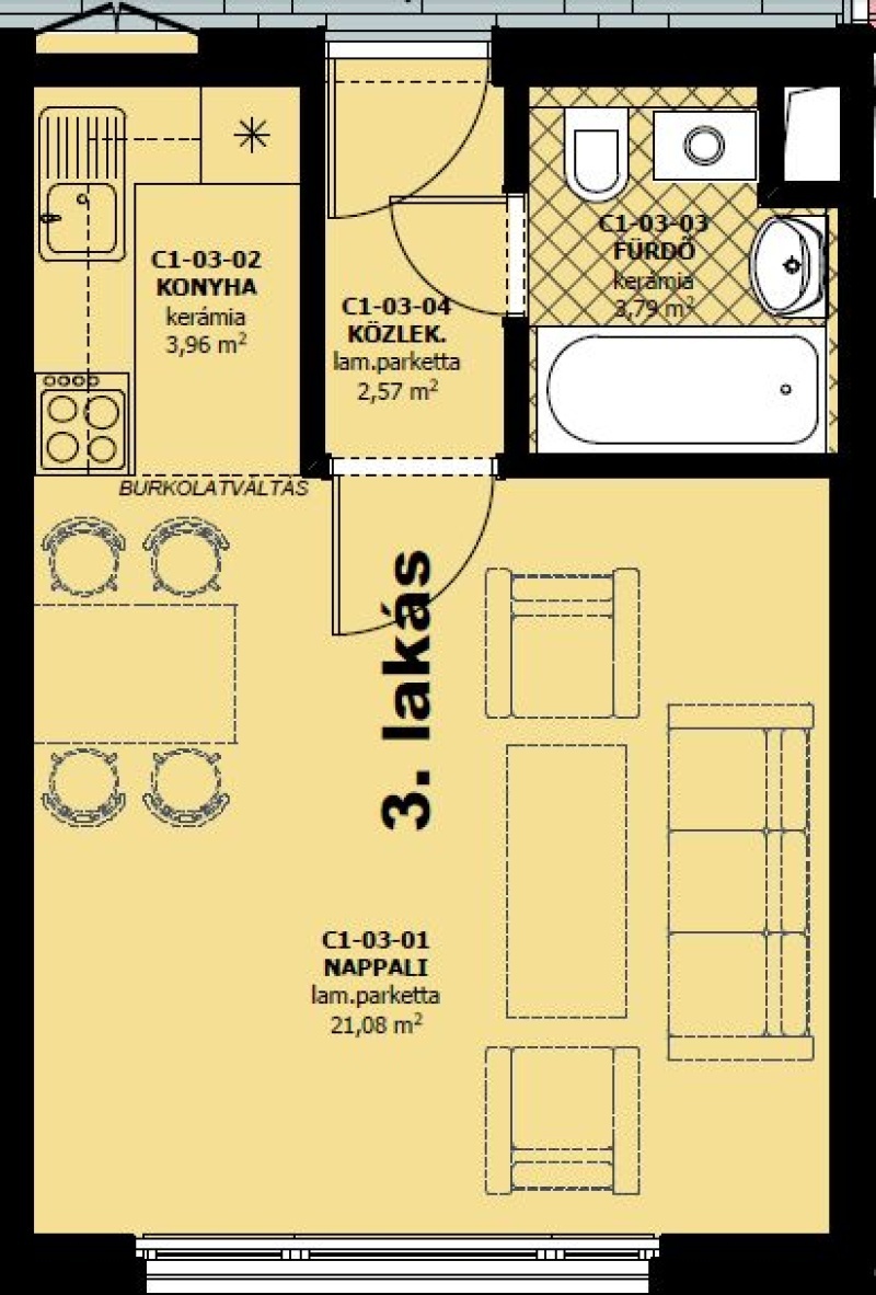 C épület, 1. emelet 3. lakás – 31 m² | garzonlakás | DNy-i tájolás
